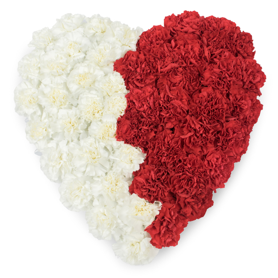 Introducing our graceful Heart-Shaped Carnations bouquet, meticulously arranged by Handy Flowers. This stunning arrangement features a blend of white and red carnations, perfect for expressing your heartfelt sympathy with elegance.